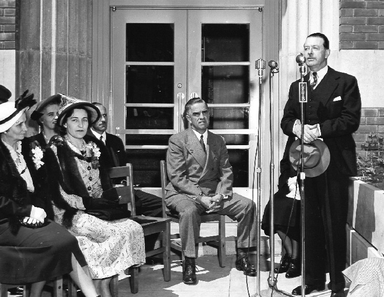 - en-CA The branch was dedicated by His Excellency Field Marshall The Right Honorable Viscount Alexander of Tunis Governor General of Canada ; L-R: Lady Mayoress W L Houck, Lady Alexander of Tunis, Mayor W L Houck, at the microphone His Excellency Field Marshall The Right Honorable Viscount Alexander of Tunis Governor General of Canada ;