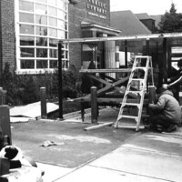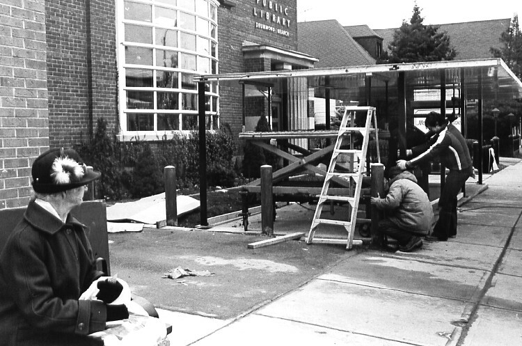 - Niagara Falls Public Library - Drummond Branch, bus shelter being installed on Main St
