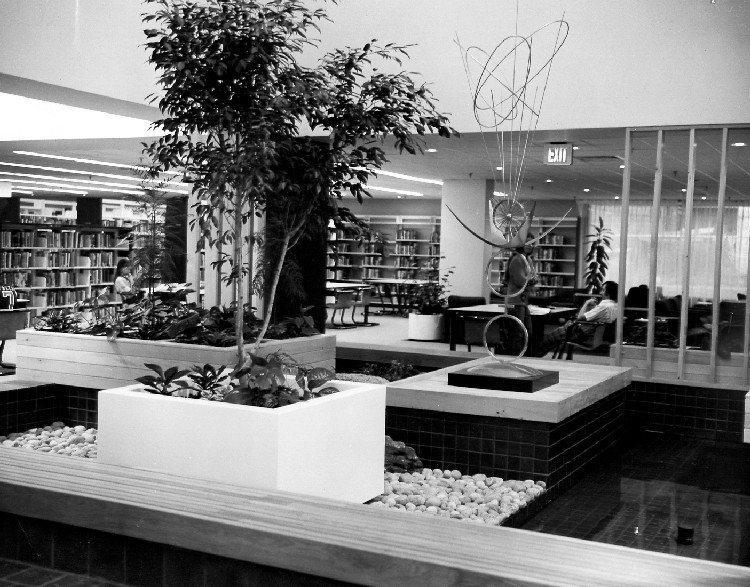 Opening day at Niagara Falls Public Library Victoria Ave location the interior garden