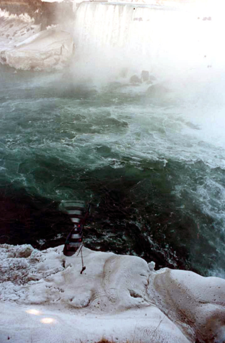 Helicopter in front of the American Falls during filming of the Movie "The Long Kiss Goodnight"