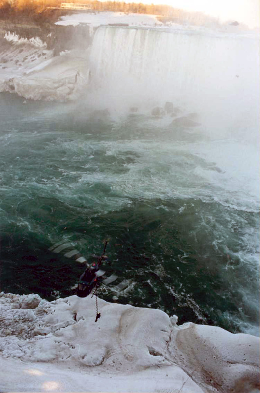 Helicopter in front of the American Falls during filming of the Movie "The Long Kiss Goodnight"