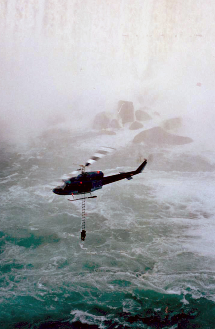 Helicopter in front of the American Falls during filming of the Movie "The Long Kiss Goodnight"