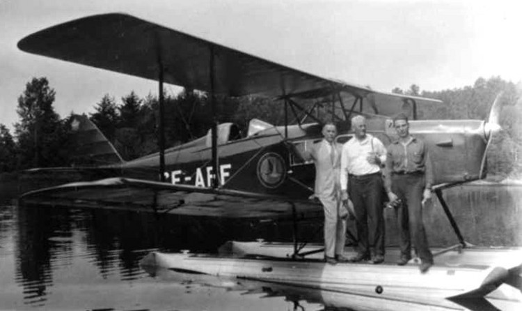 F. H. Leslie, Colonel C. H. Vandersluys and Pilot Ronald George on a trip to the Swayze Mining Area in Northern Ontario