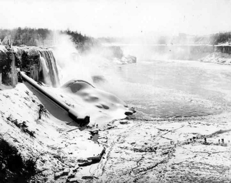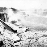 - Partially frozen American Falls and the Incline Railway, Horseshoe Falls in background