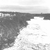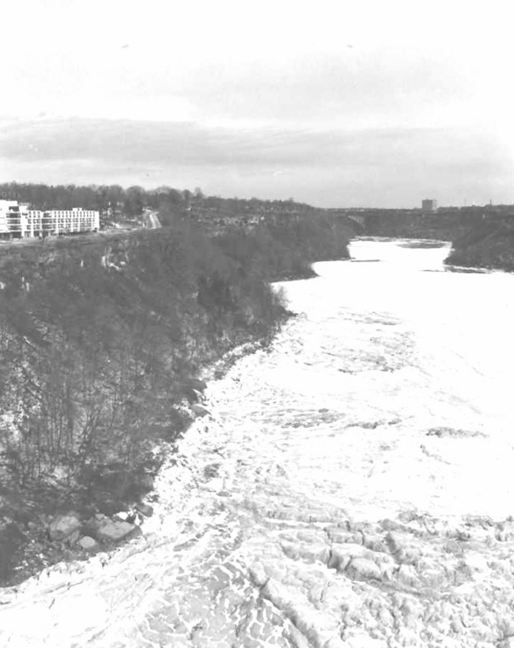- Frozen Niagara River with Michael's Inn on the left and the Whirlpool Bridge at the centre