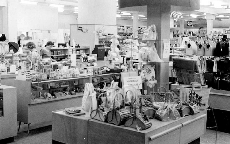 Rosbergs Department Store Ltd. Niagara Falls - main floor - purses and cosmetics on display