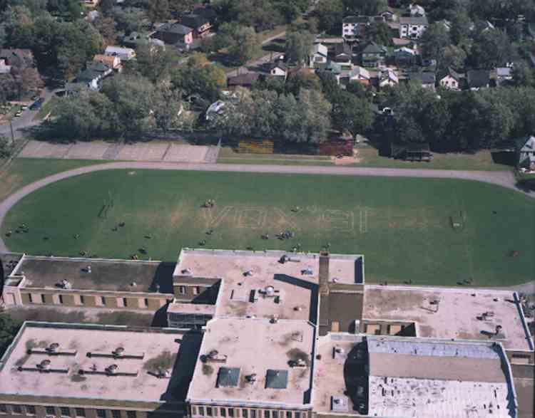 An aerial view of the St. Catharines Collegiate Institute & Vocational School - St. Catharines, Ont.