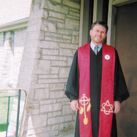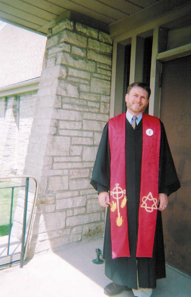 Reverend Rob Duncan at the entrance to the First Baptist Church