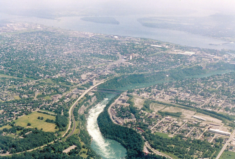Aerial View of Niagara Falls, New York, the Niagara Whirlpool and Whirlpool Rapids