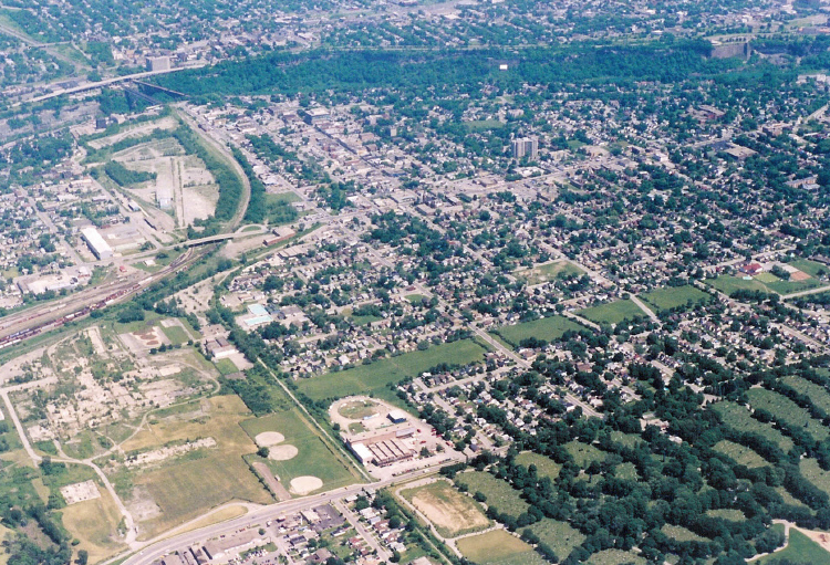 Aerial View of the CNR Railyards and Niagara Falls, Ontario