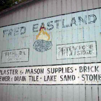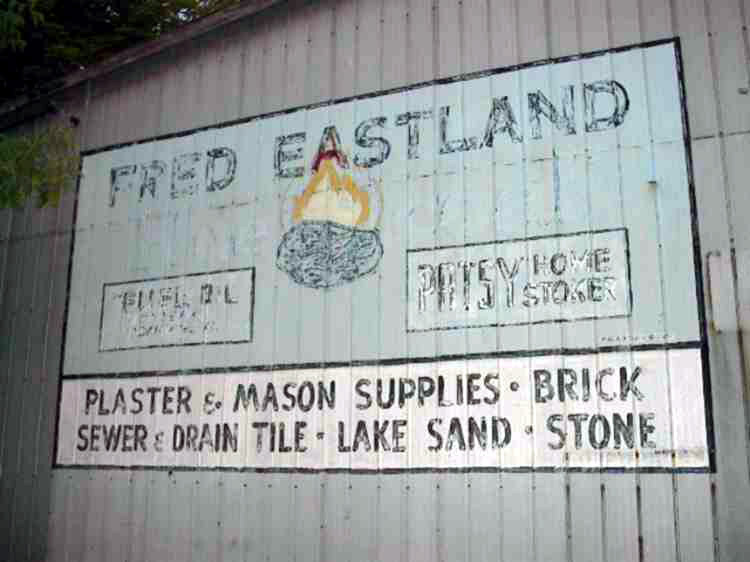 - Advertising sign for Fred Eastland on the side of a building on Erie Avenue