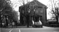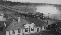 Mr. Collett, old fire hall on the left; A.H. Collett's fireproof storage building wa located at 7 Market Square in Niagara Falls - Now part of the City Hall Complex. Mr. Collett was a furniture mover-household removals and piano hoisting. He was also an auctioneer. His moving company was called Power City Transport