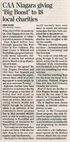 COVID-19 pandemic / United Way / Emergency Canada Support Fund / Community Support Services Niagara / Meals on Wheels / Niagara Nutrition Partners / Start Me Up Niagara / Necessities of Life Triage / Hallworth, Frances