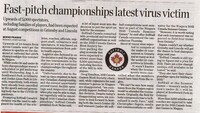 Fast-pitch championships latest virus victim : Upwards of 5,000 spectators, including families of players, had been expected at August competitions in Grimsby and Lincoln