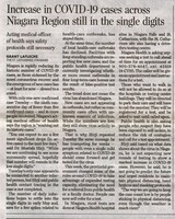 Increase in COVID-19 cases across Niagara Region still in the single digits : Acting medical officer of health says safety protocols still necessary