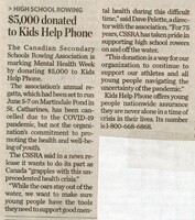 Canadian Secondary Schools Rowing Association / Mental Health Week / COVID-19 pandemic / Pelette, Dave