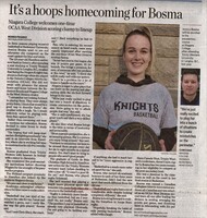 It's a hoops homecoming for Bosma : Niagara College welcomes one-time OCAA West Division scoring champ to lineup
