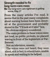 Strength needed to fix long-term-care mess Re: Our long-term care nightmare is getting worse, May 27