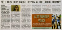 Sees to seed is back for 2022 at the public library : program encourages community gardening, local food and culture of sharing, writes Laura Chadwick