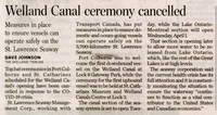 Welland Canal ceremony cancelled : measures in place to ensure vessels can operate safely on the St. Lawrence Seaway