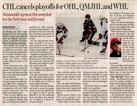 CHL cancels playoffs for OHL, QMJHL, and WHL : Memorial Cup won't be awarded for the first time in 102 years