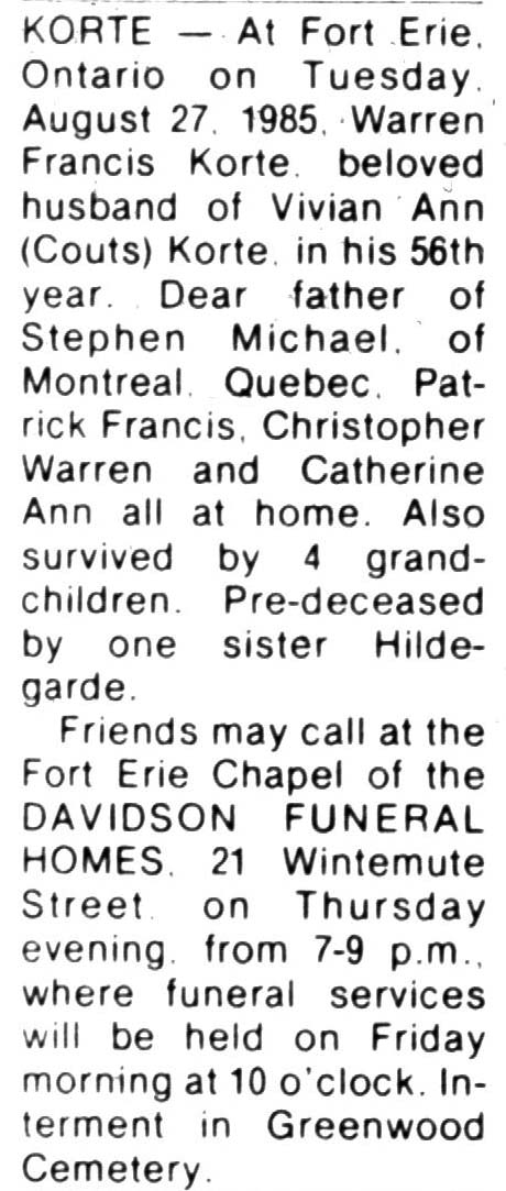 - Korte,Warren Francis/d
