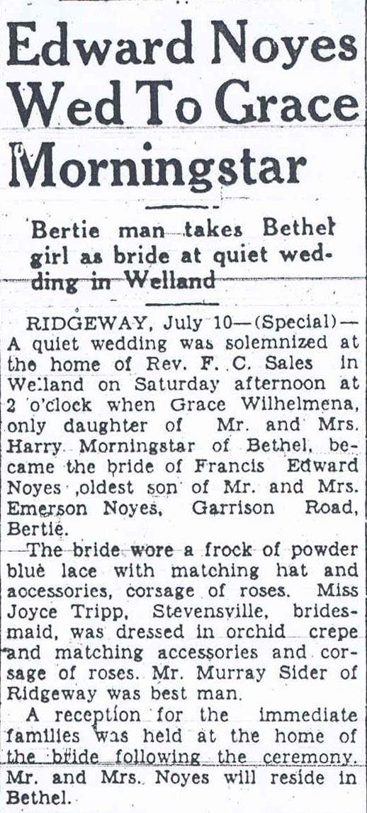 Morningstar, Grace Wilhelmena / Noyes, Francis Edward