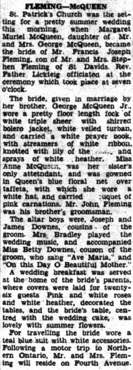 McQueen, Margaret Muriel / Fleming, Francis Joseph