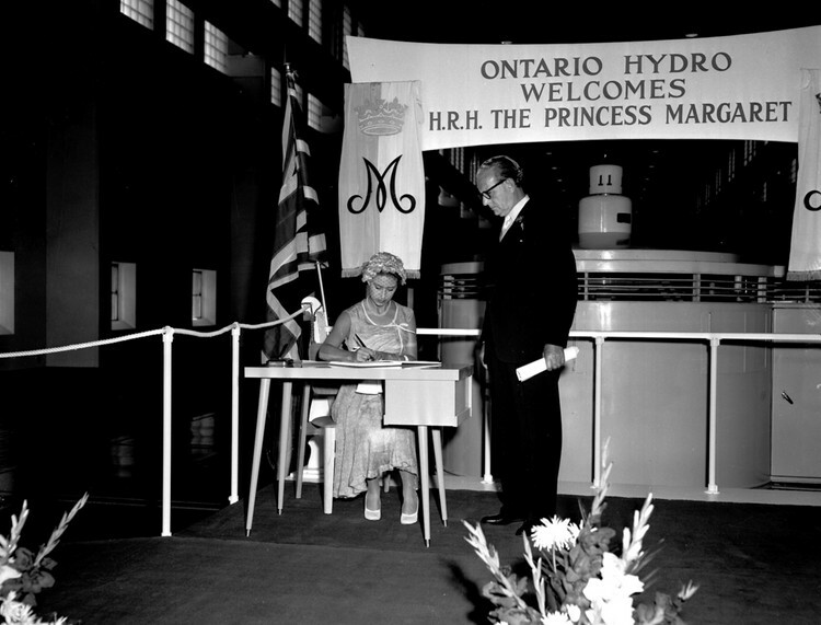 HRH Princess Margaret signing guest book at Sir Adam Beck Niagara Generating Station No. 2