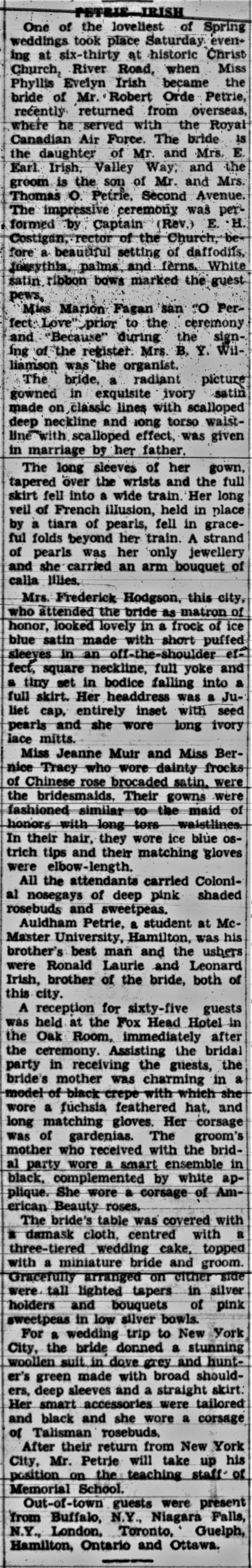 Irish, Phyllis Evelyn/Petrie, Robert Orde