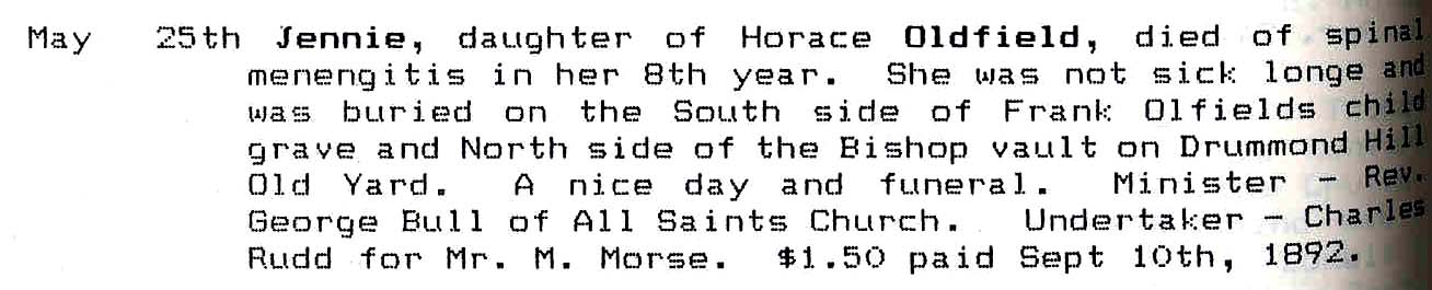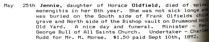 - en-CA May 25, 1892; died age 7 yrs; daughter of Horace Oldfield