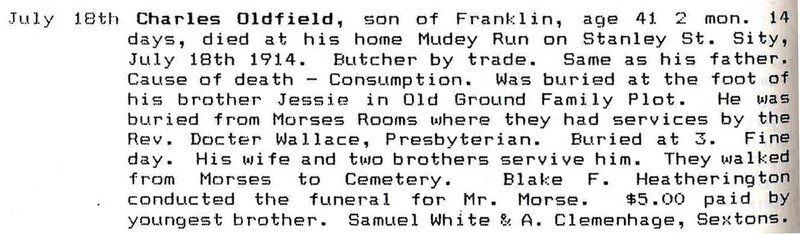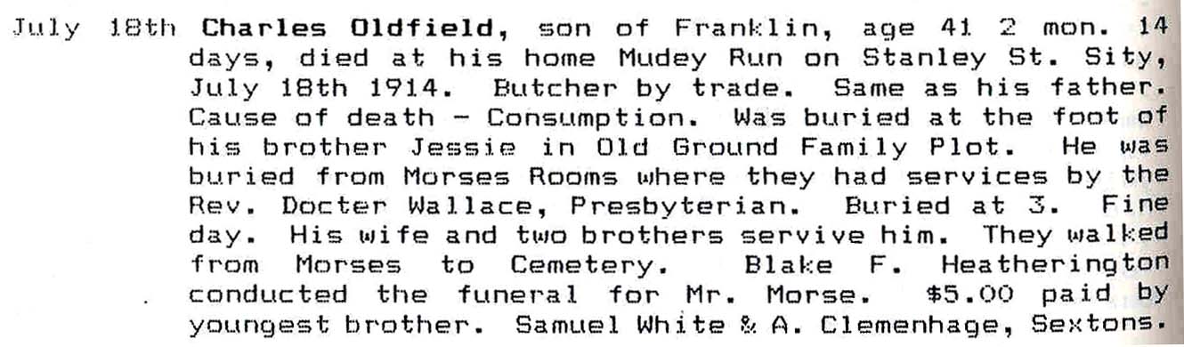 - en-CA Jul 18,1914; butcher; son of Franklin Oldfield (butcher); brother of Jessie (pre-deceased) and 2 other brothers; married