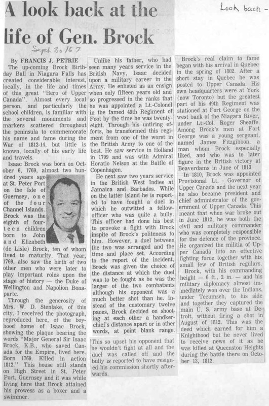 - A look back at the life of Gen. Brock