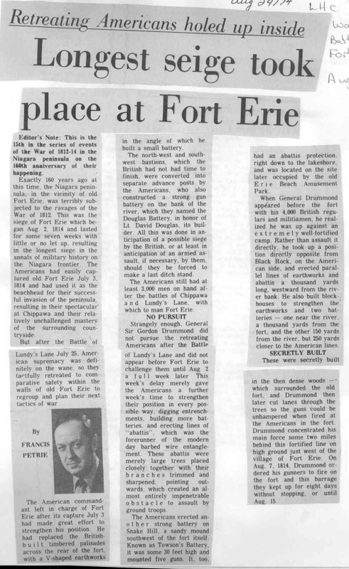 Longest siege took place at Fort Erie
