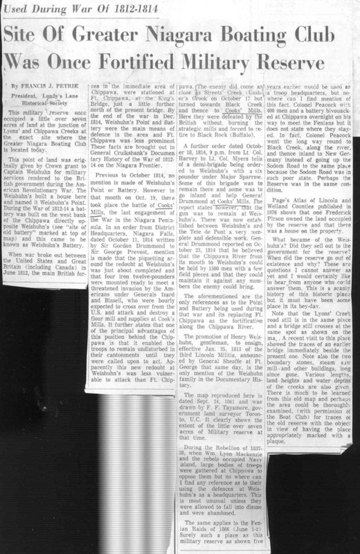 - Site of greater Niagara boating club was once fortified military reserve