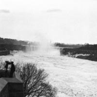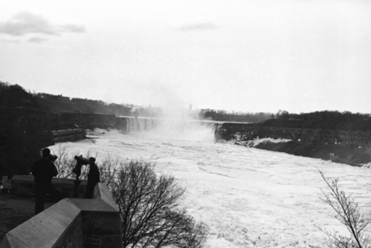 - en-CA Horseshoe Falls in the winter with the ice bridge