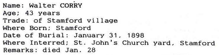 - en-CA Burial: St. John's, Jan 31, 1898 / Corry on page 66, but Corby in index