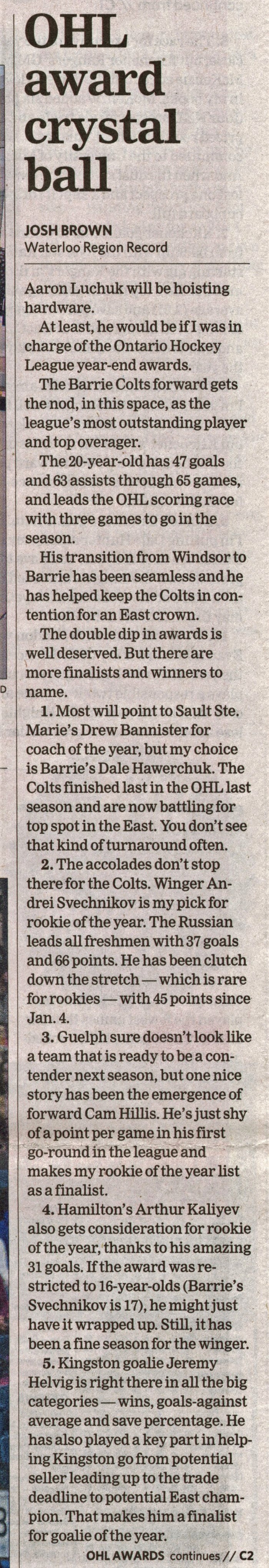 OHL award crystal ball