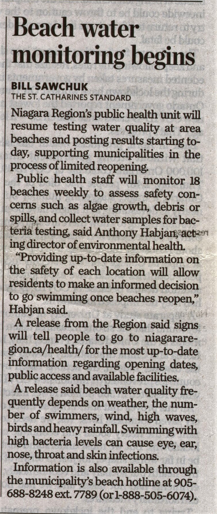 - Beach water monitoring begins