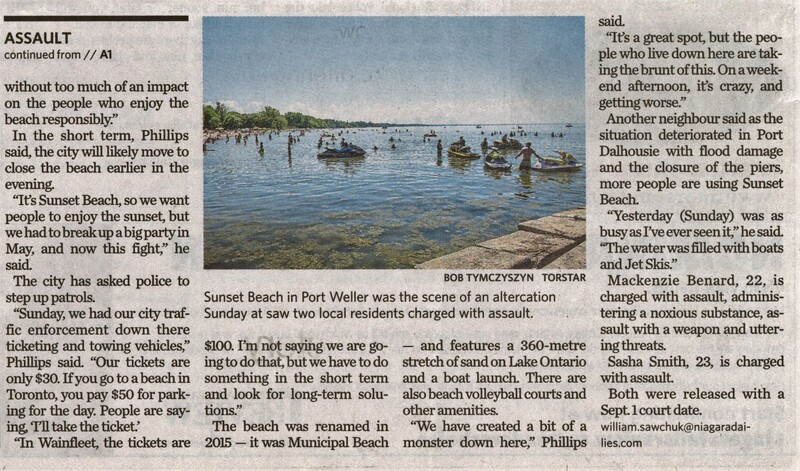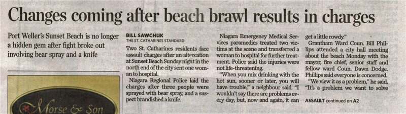- Changes coming after beach brawl results in charges : Port Weller's Sunset Beach is no longer a hidden gem after fight broke out involving bear spray and a knife