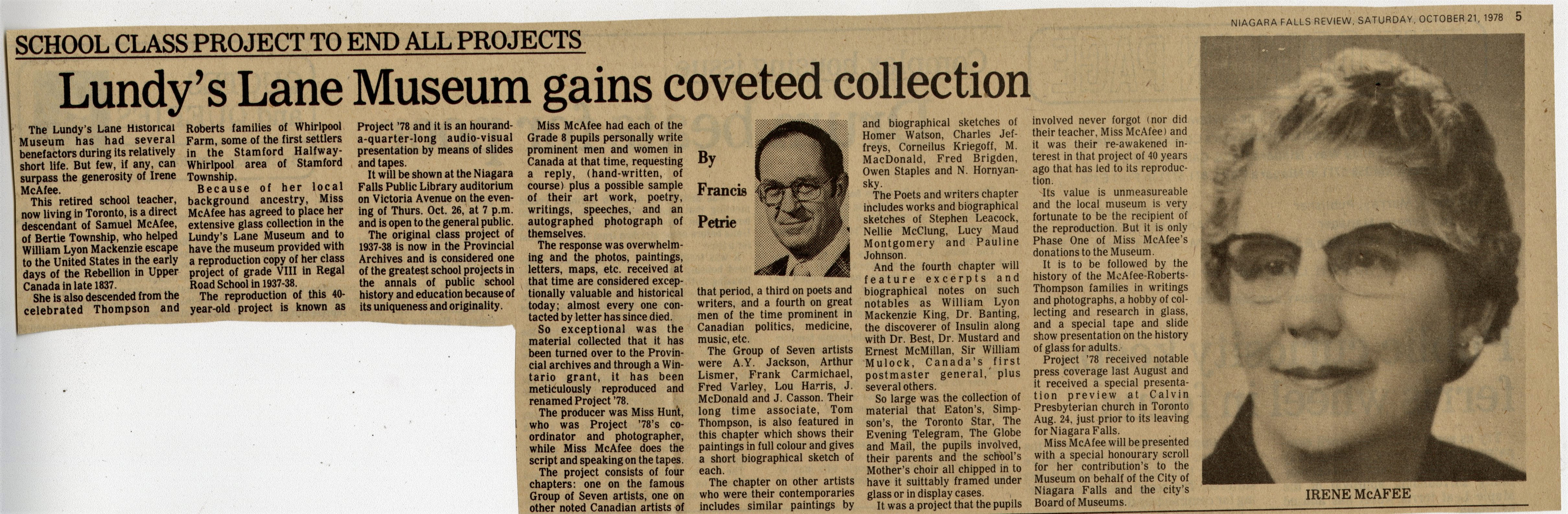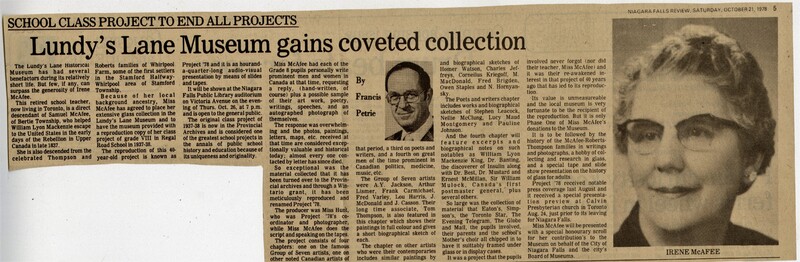 - School Class Project to End All Projects : Lundy's Lane Museum gains coveted collection