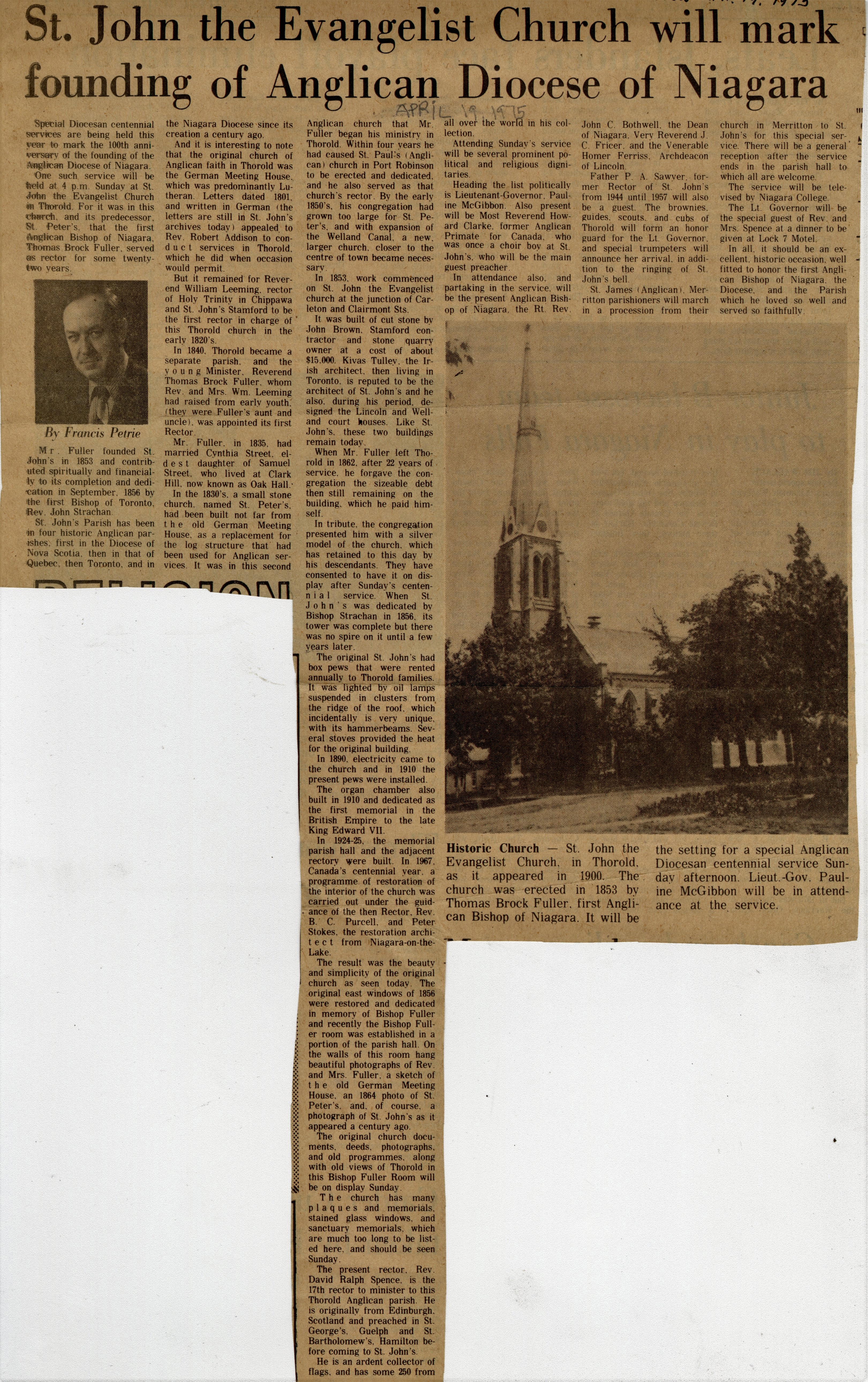 - St. John the Evangelist Church will mark founding of Anglican Diocese of Niagara