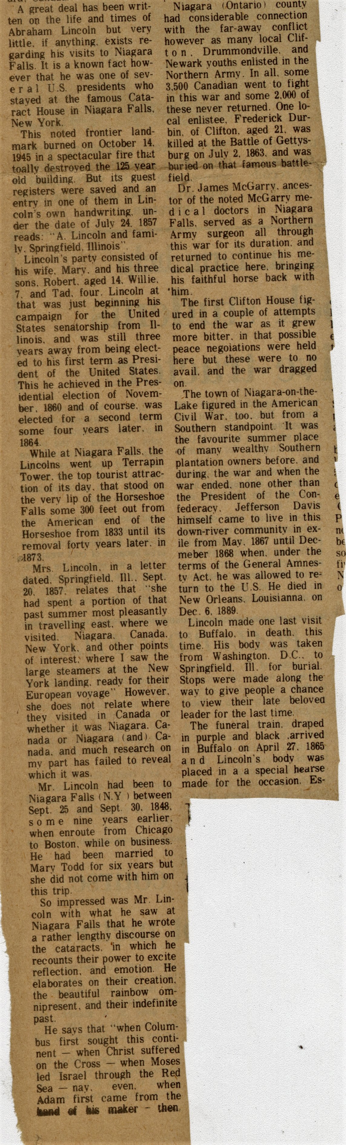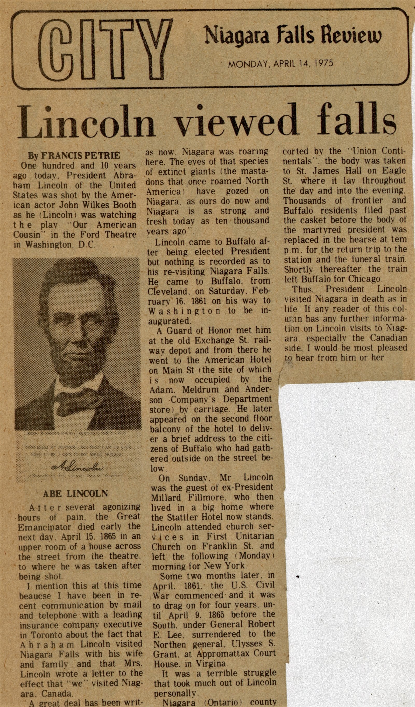 - Lincoln viewed falls