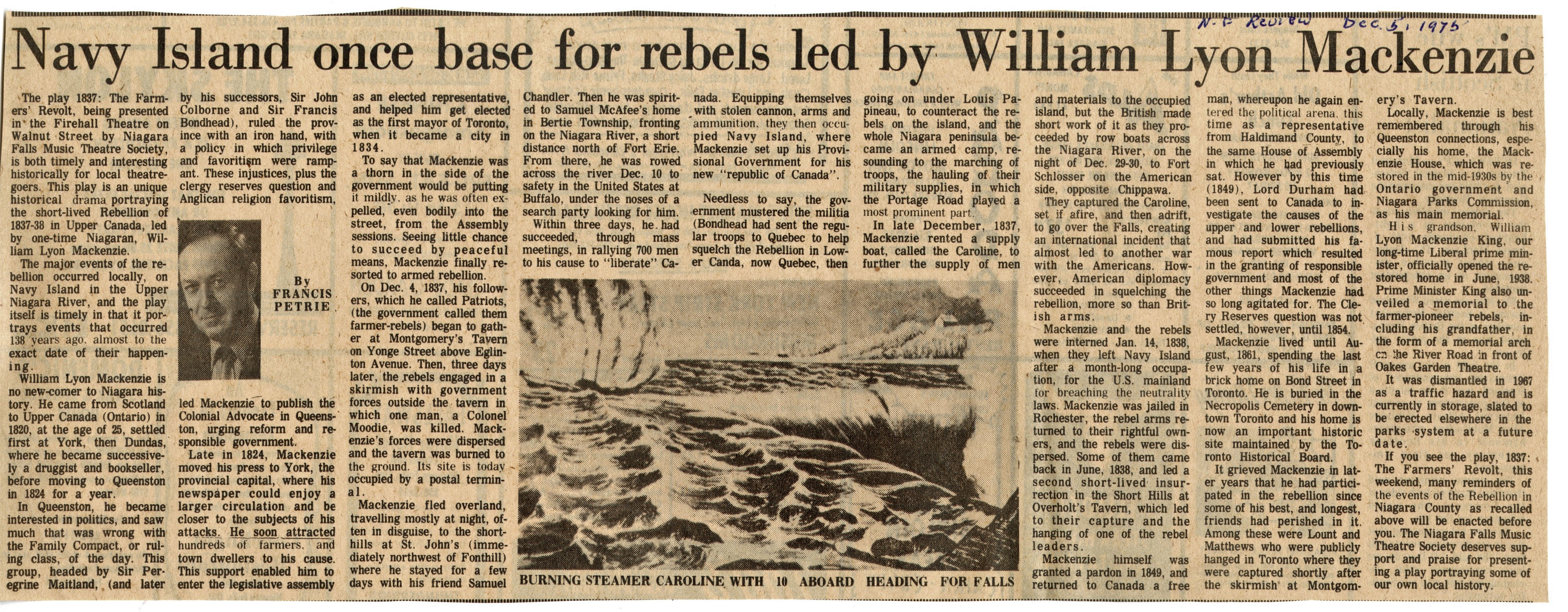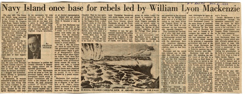 - Navy Island once base for rebels led by William Lyon Mackenzie