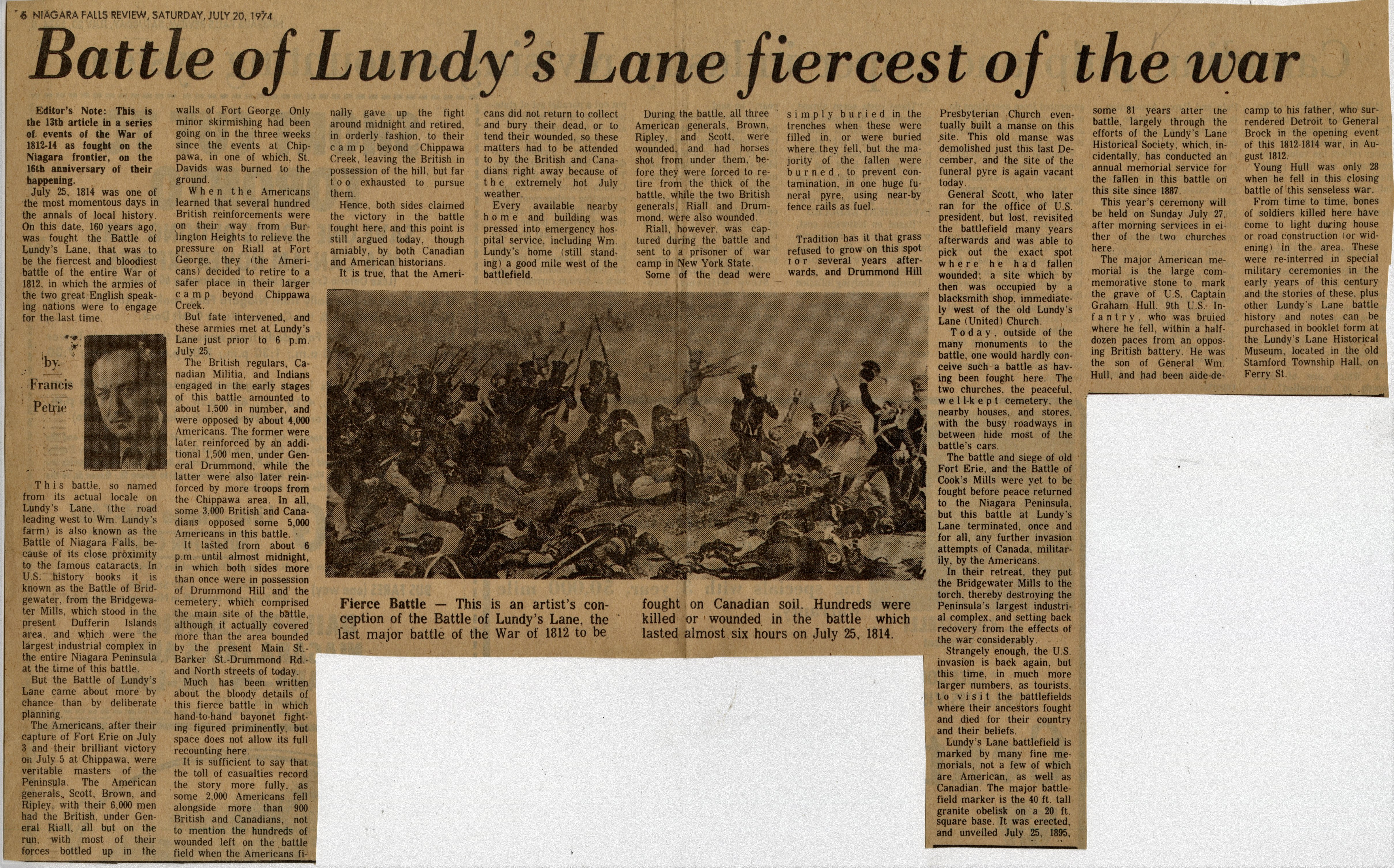 - Battle of Lundy's Lane fiercest of the war