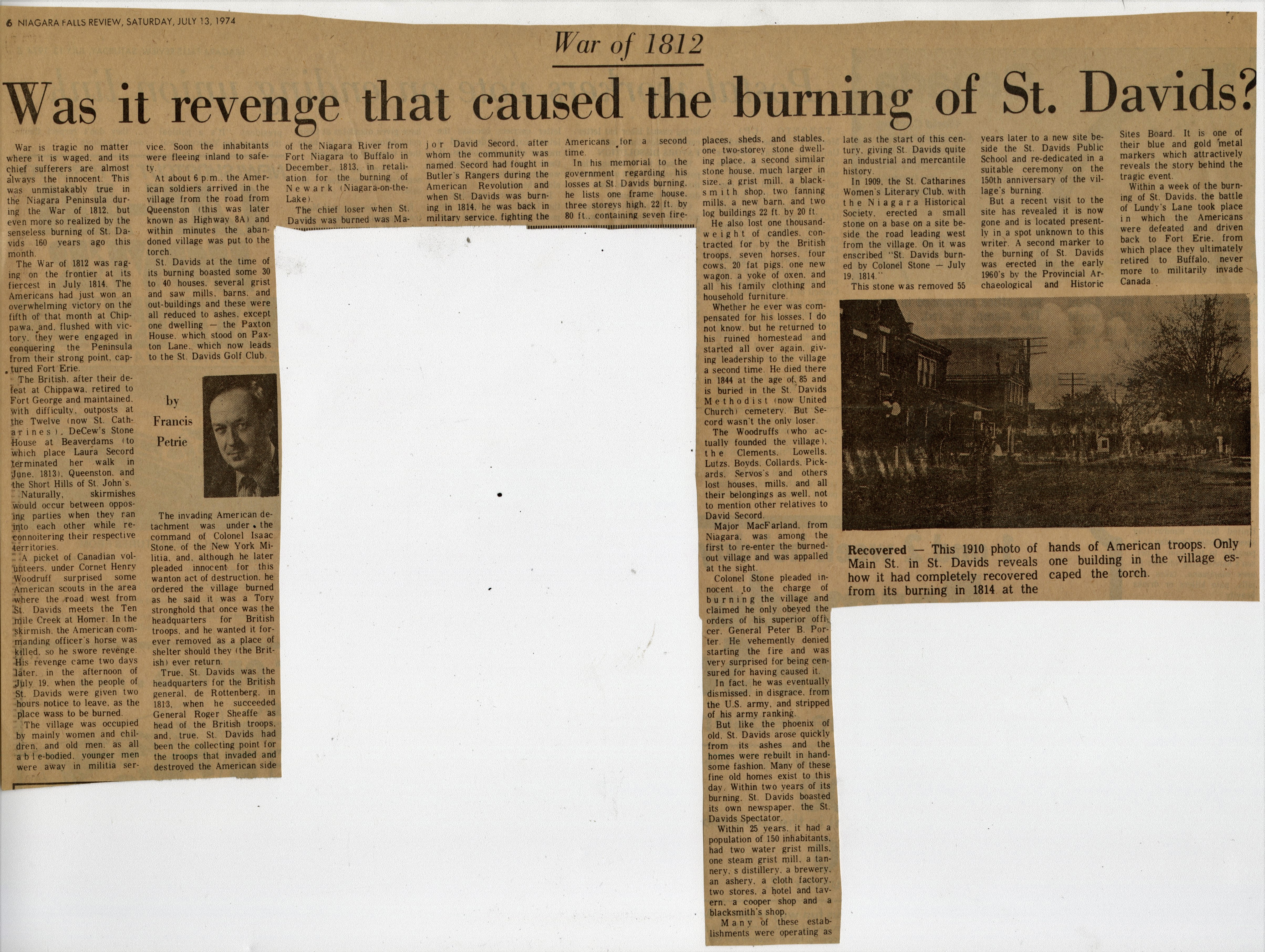 - War of 1812 : Was it revenge that caused the burning of St. Davids?