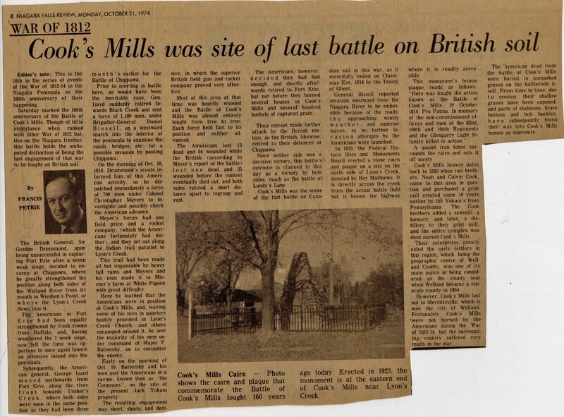 - War of 1812 : Cook's Mills was site of last battle on British soil