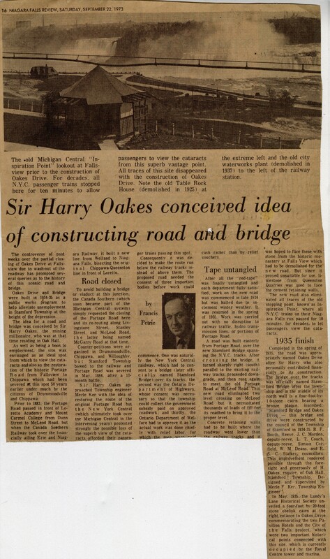 - Sir Harry Oakes conceived idea of constructing road and bridge
