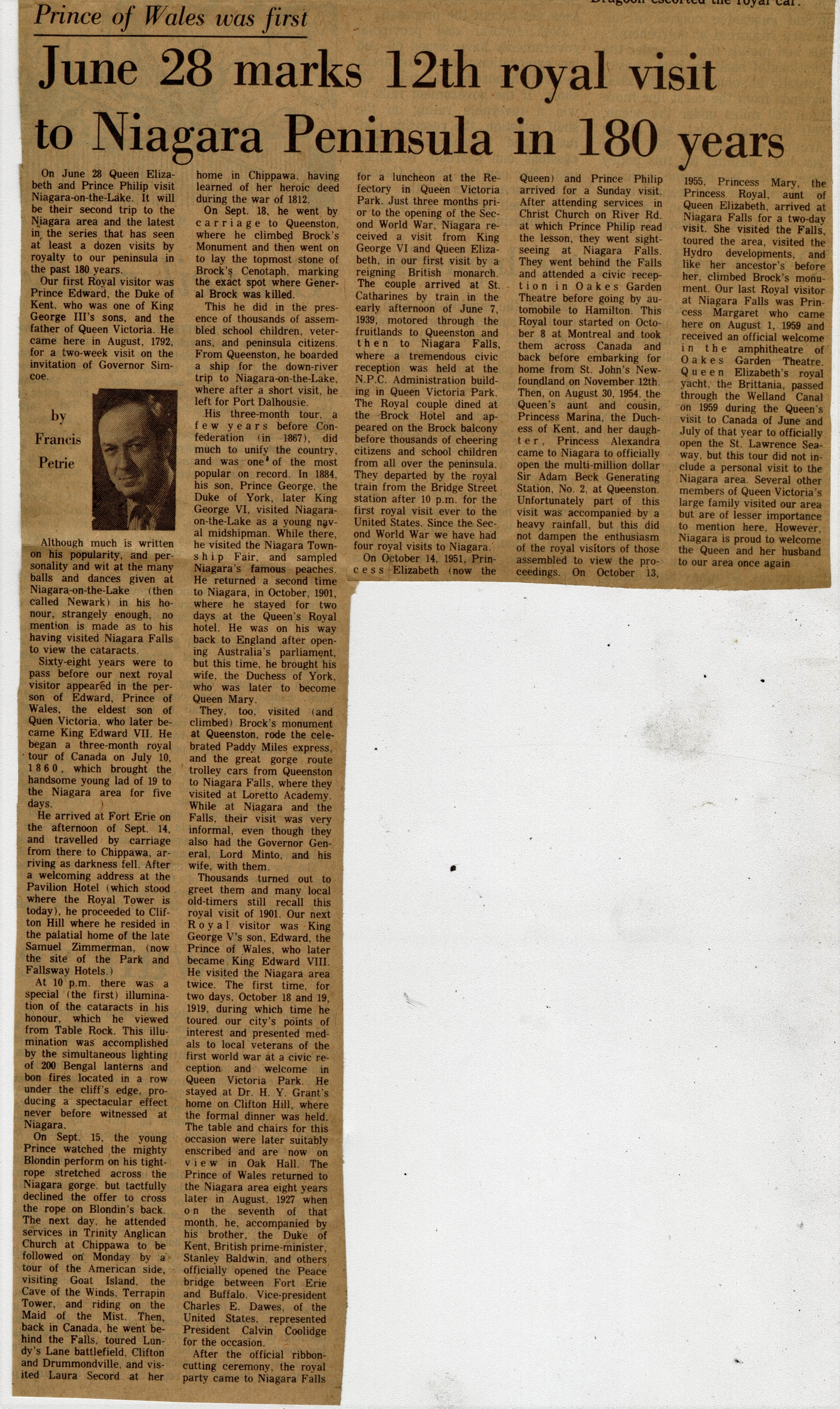 Prince of Wales was first : June 28 marks 12th royal visit to Niagara Peninsula in 180 years