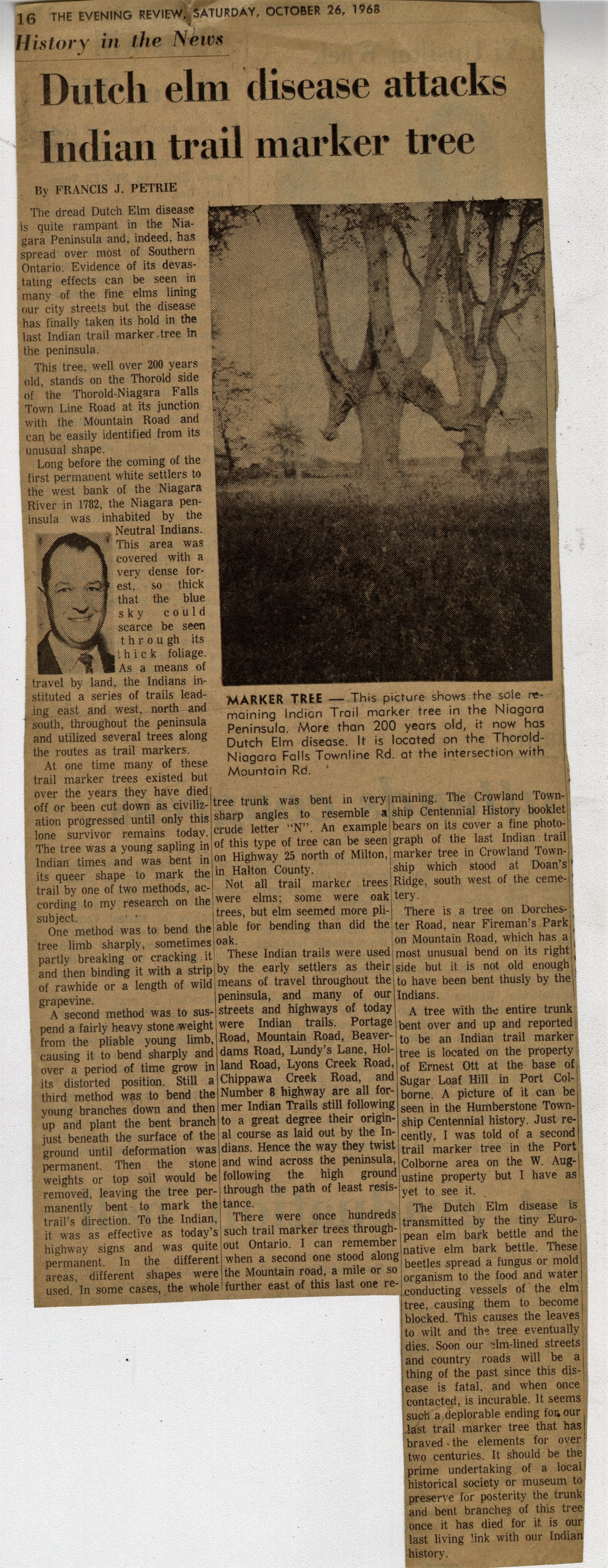 History in the News : Dutch elm disease attacks Indian trail marker tree